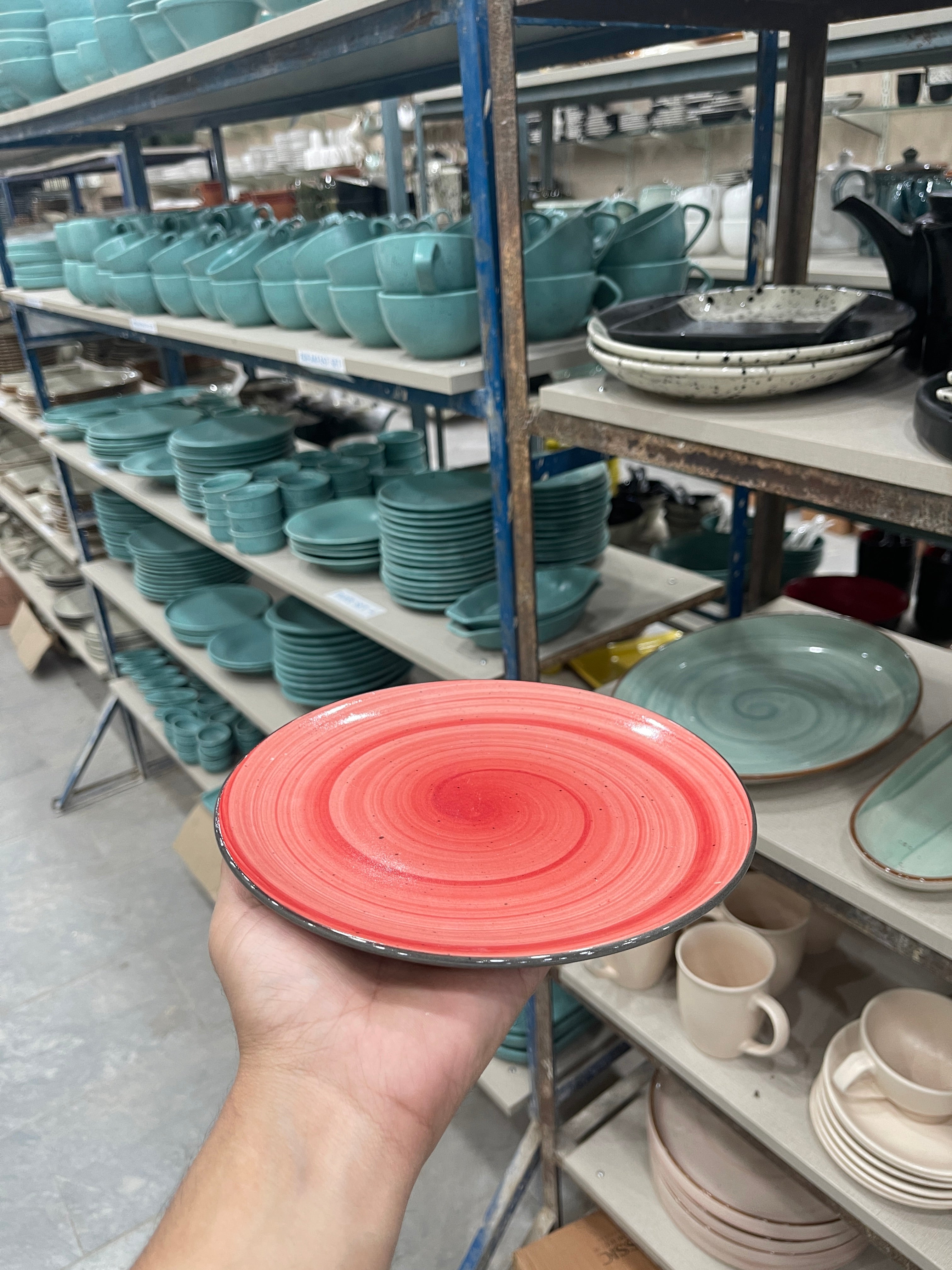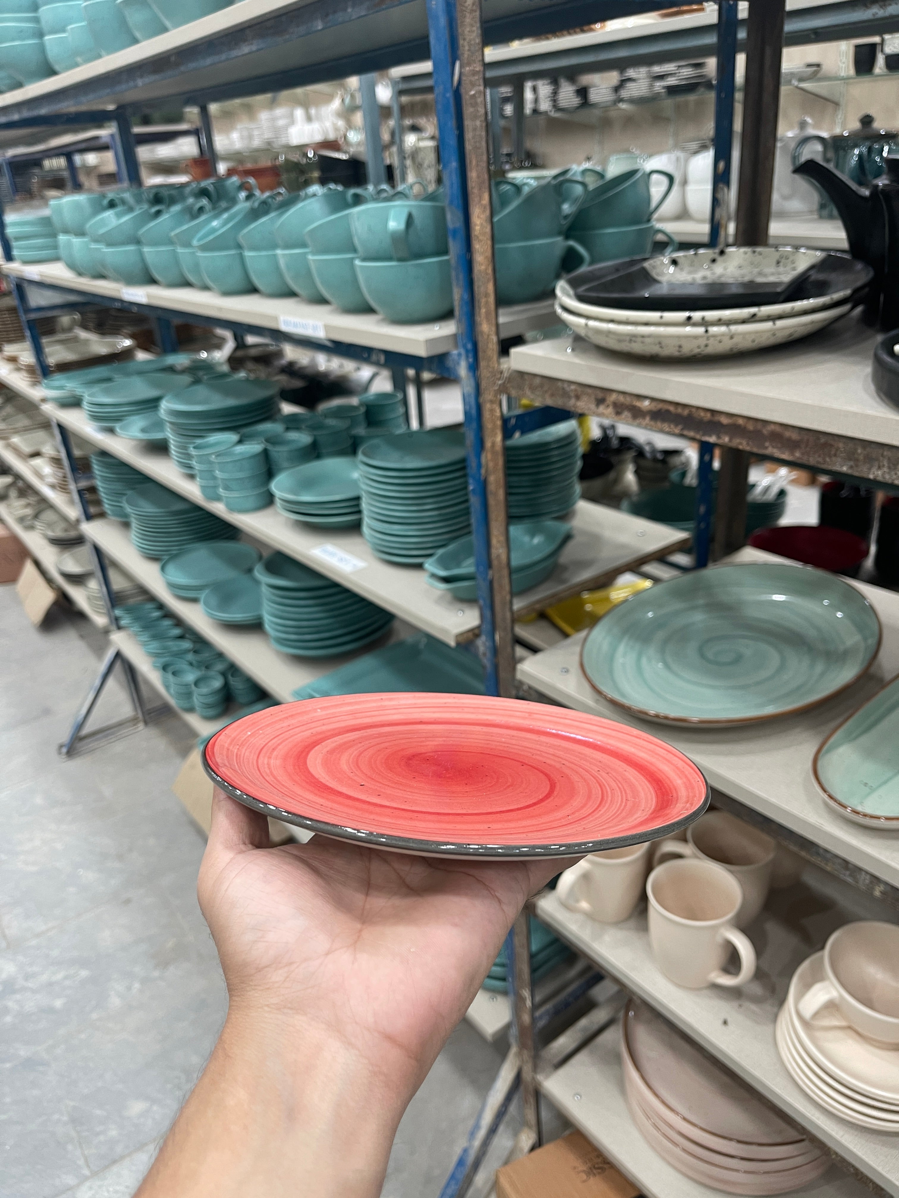 8 inch Rimless Plate ( Red Colorline Black line ) ( Set of 6 ) ( Super Discounted )