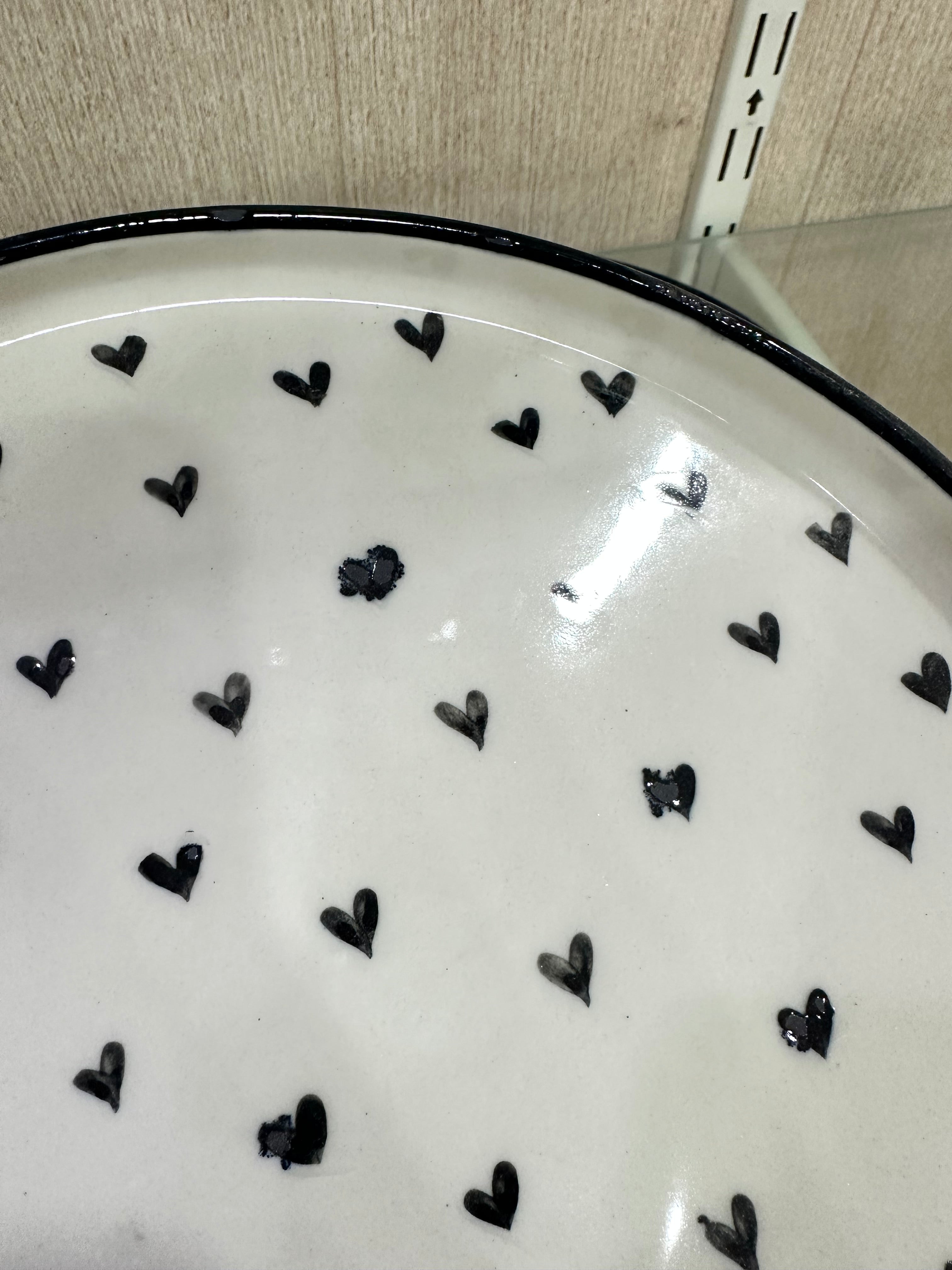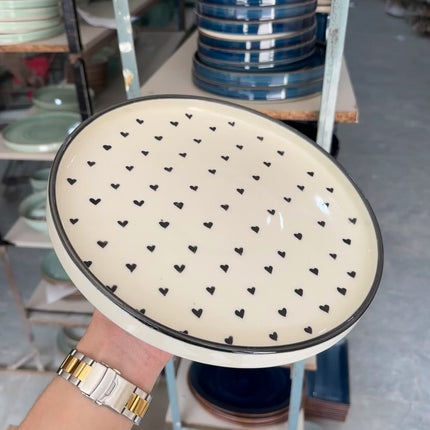 Leftover 10 inch Classic Plate ( Glossy Off-White with Black Hearts )