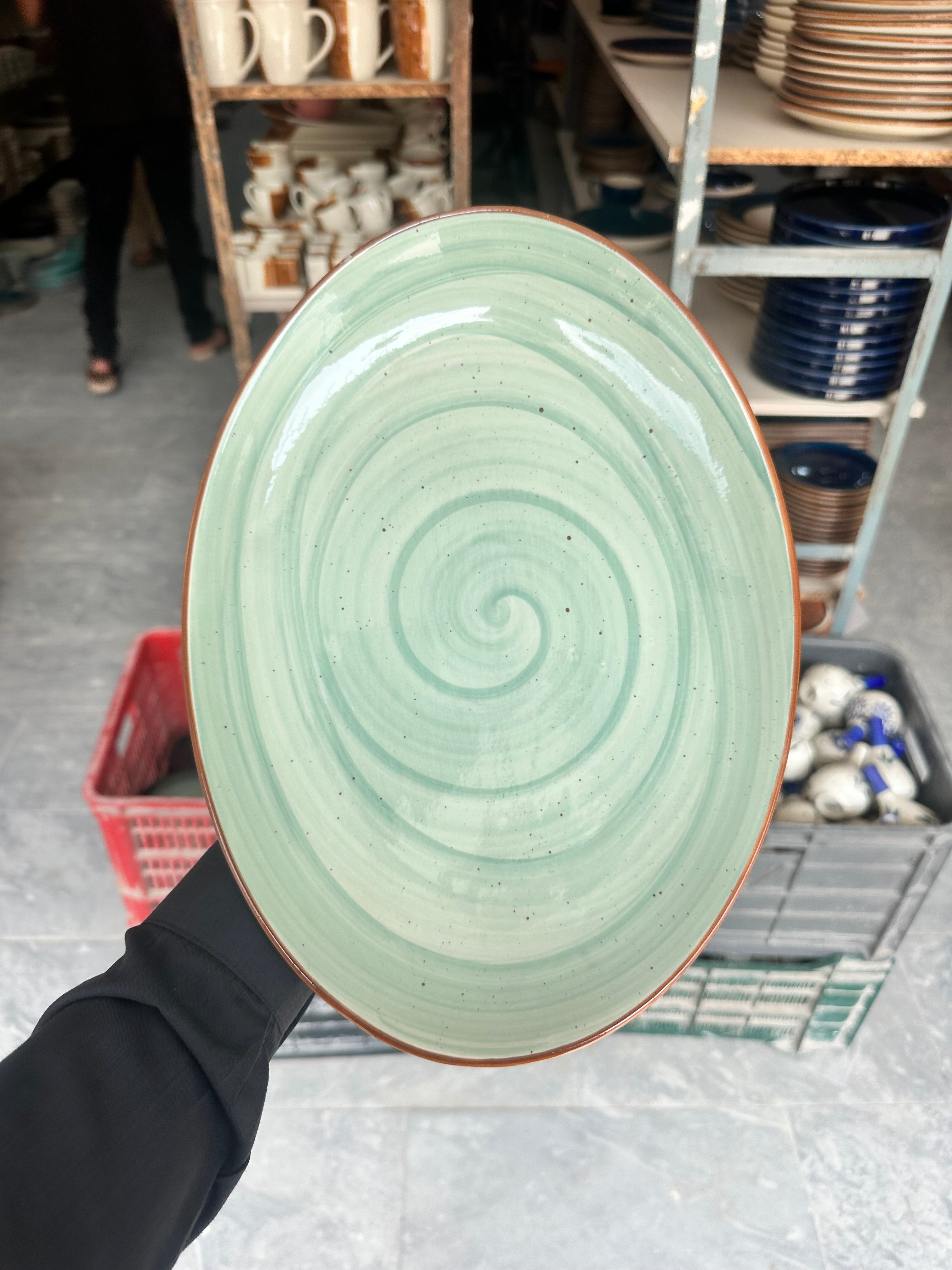 Leftover 13 inch Rimless Rice Dish ( Teal Colorline Brown line )