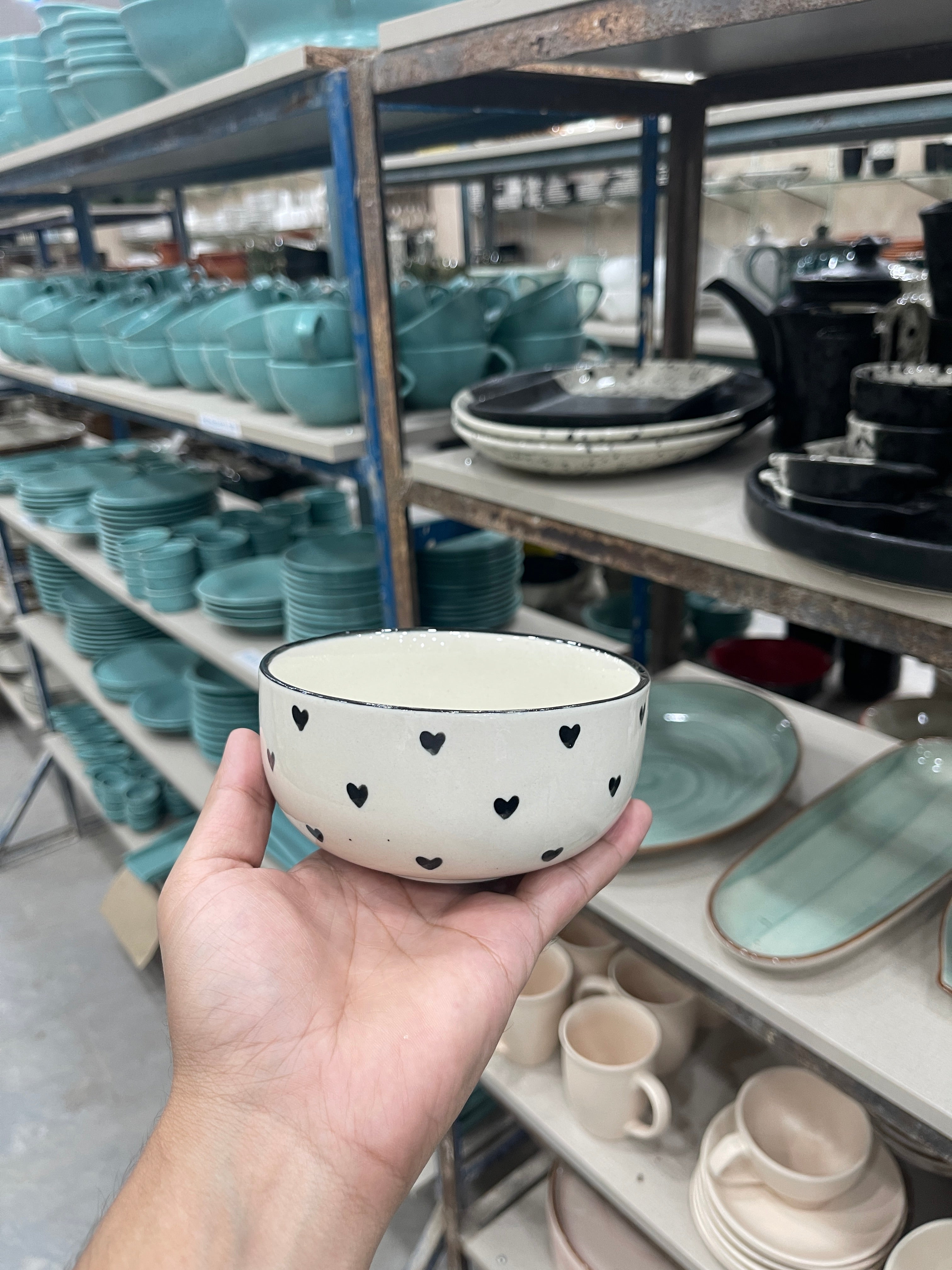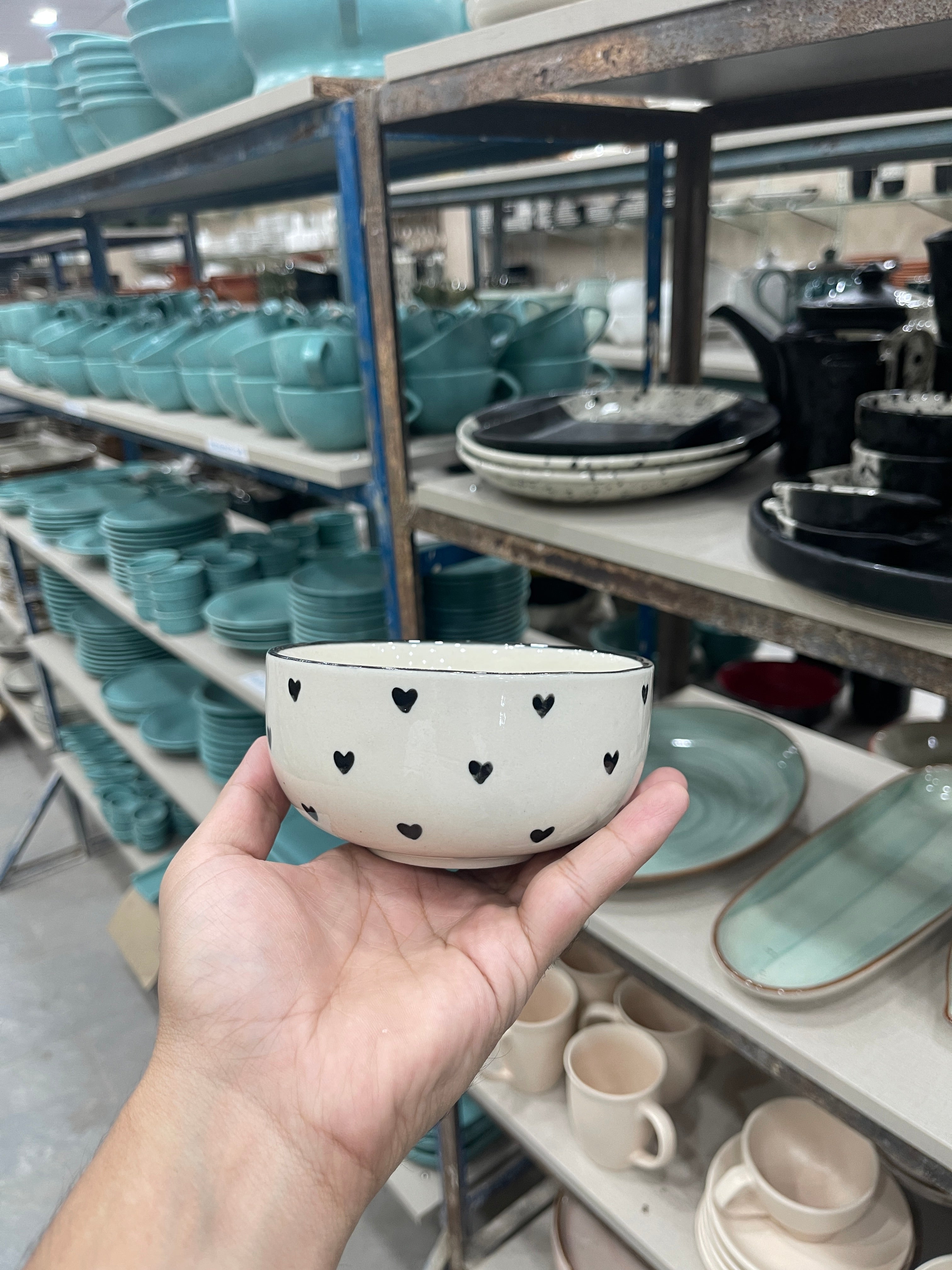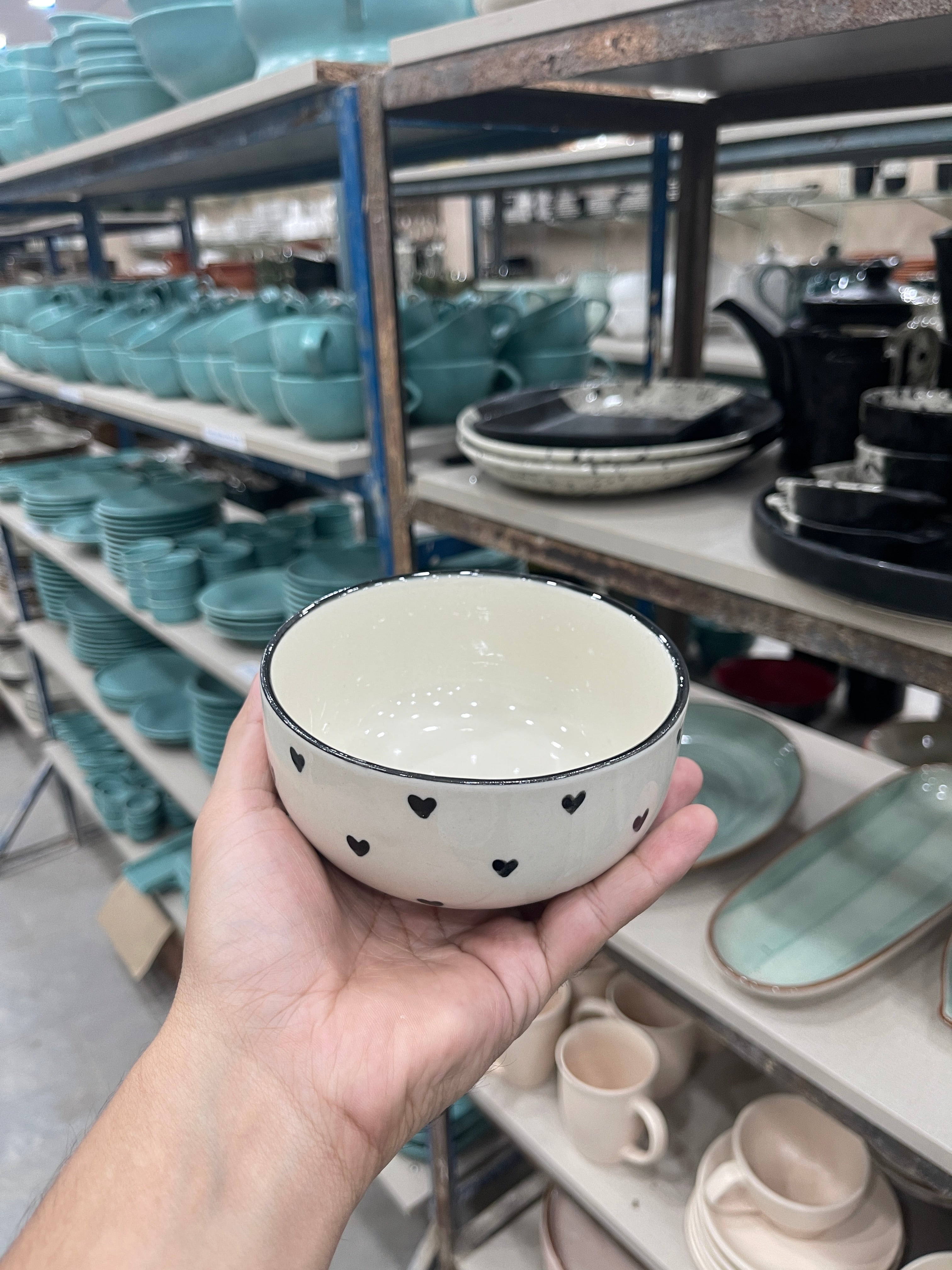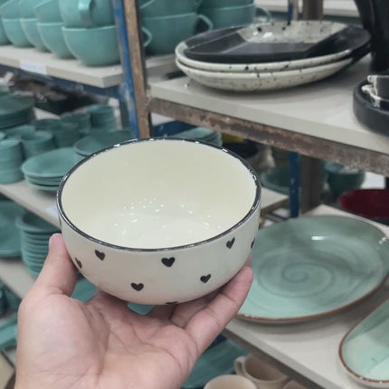 Leftover 5 inch Single Serving Bowl ( Glossy Off-White with Black Hearts )