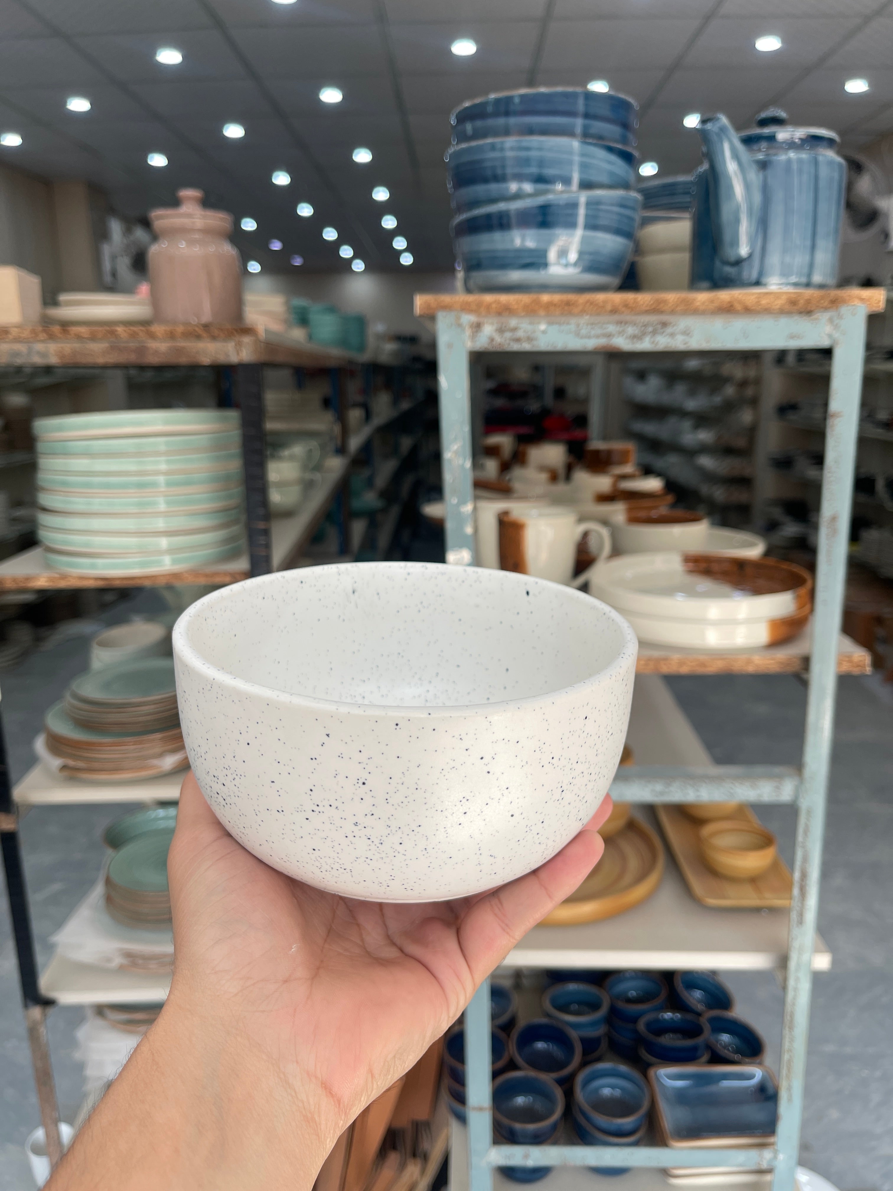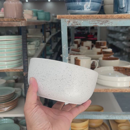 Leftover 6 inch Noodle Bowl ( White Matte with Black Specks )