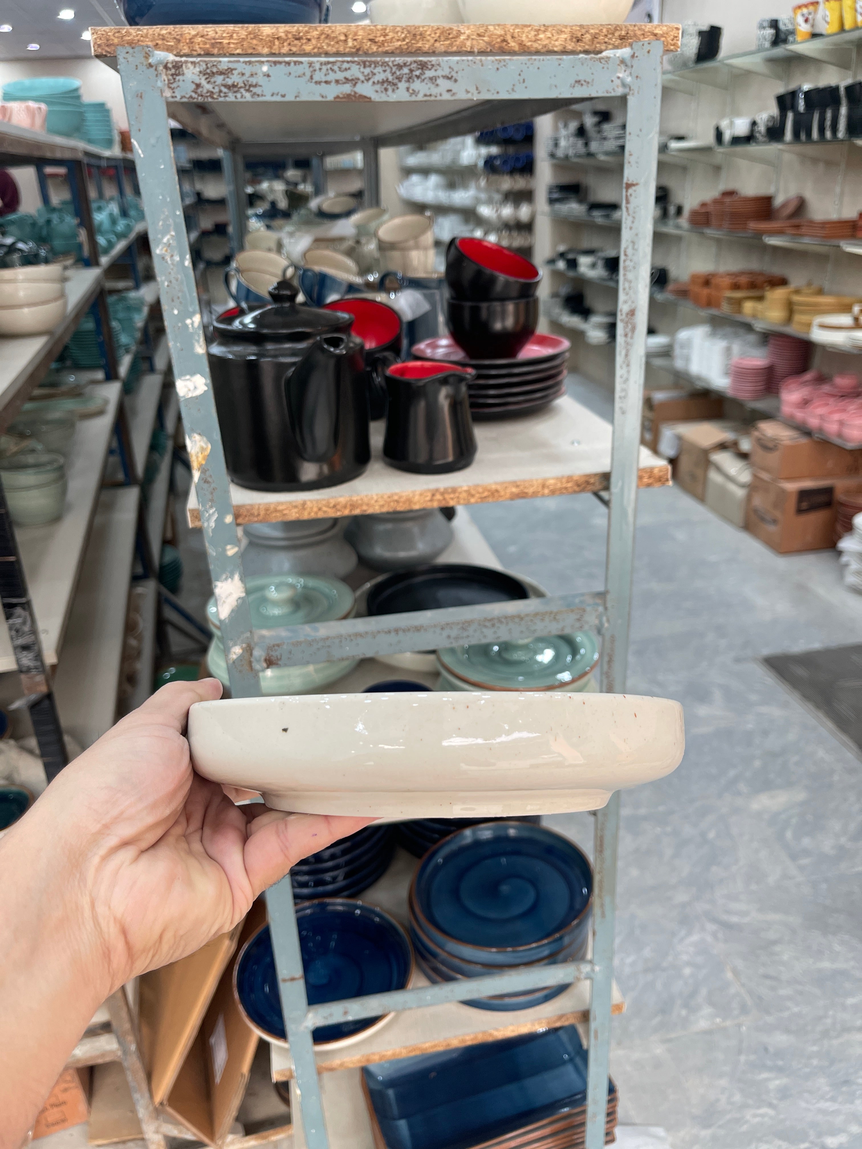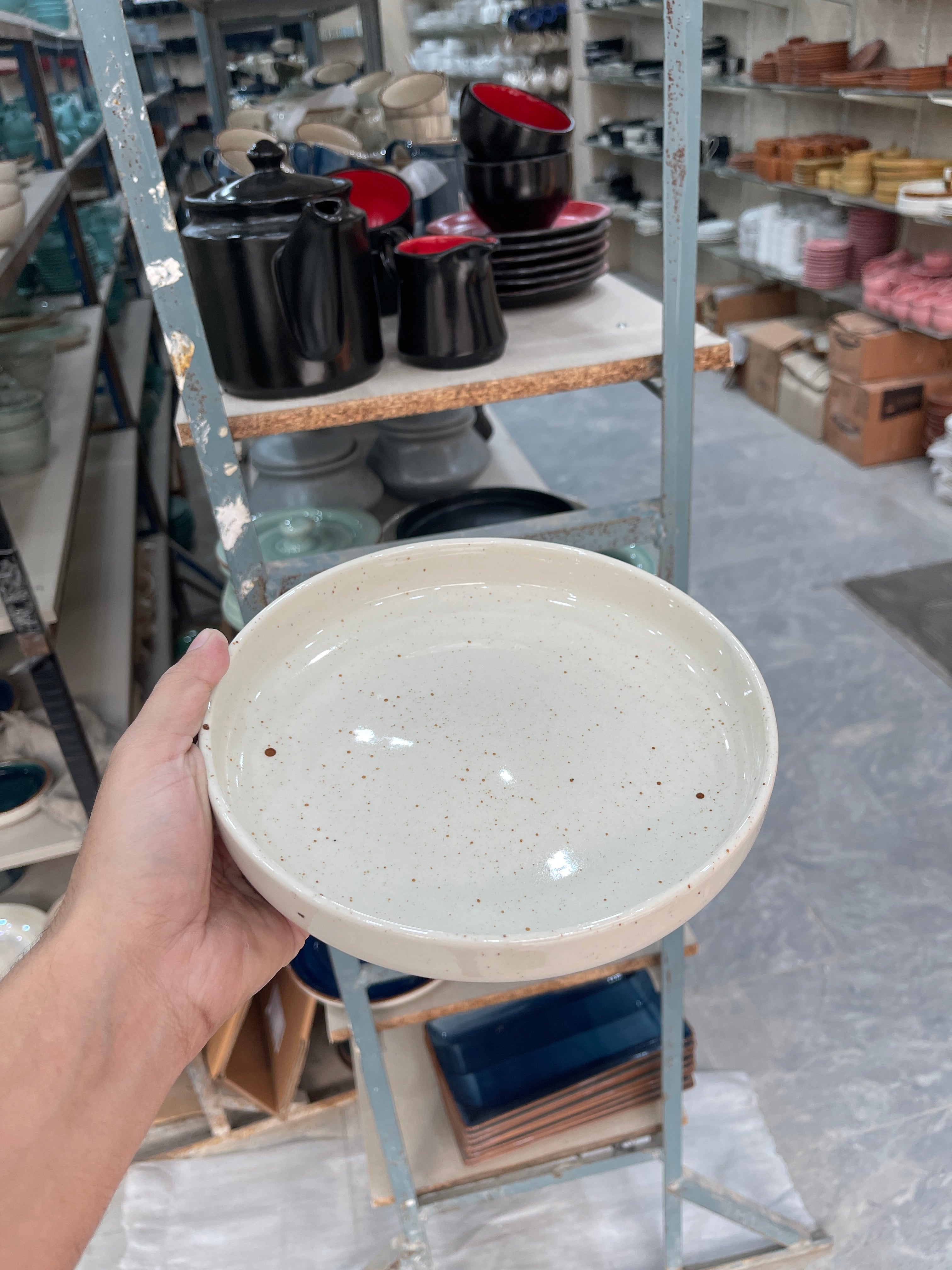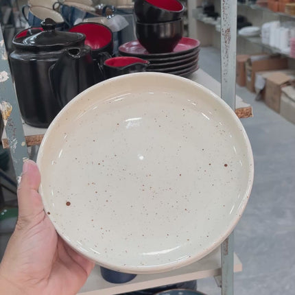 Leftover 8 inch Deep Classic Plate ( Glossy Off-White with Brown Specks )