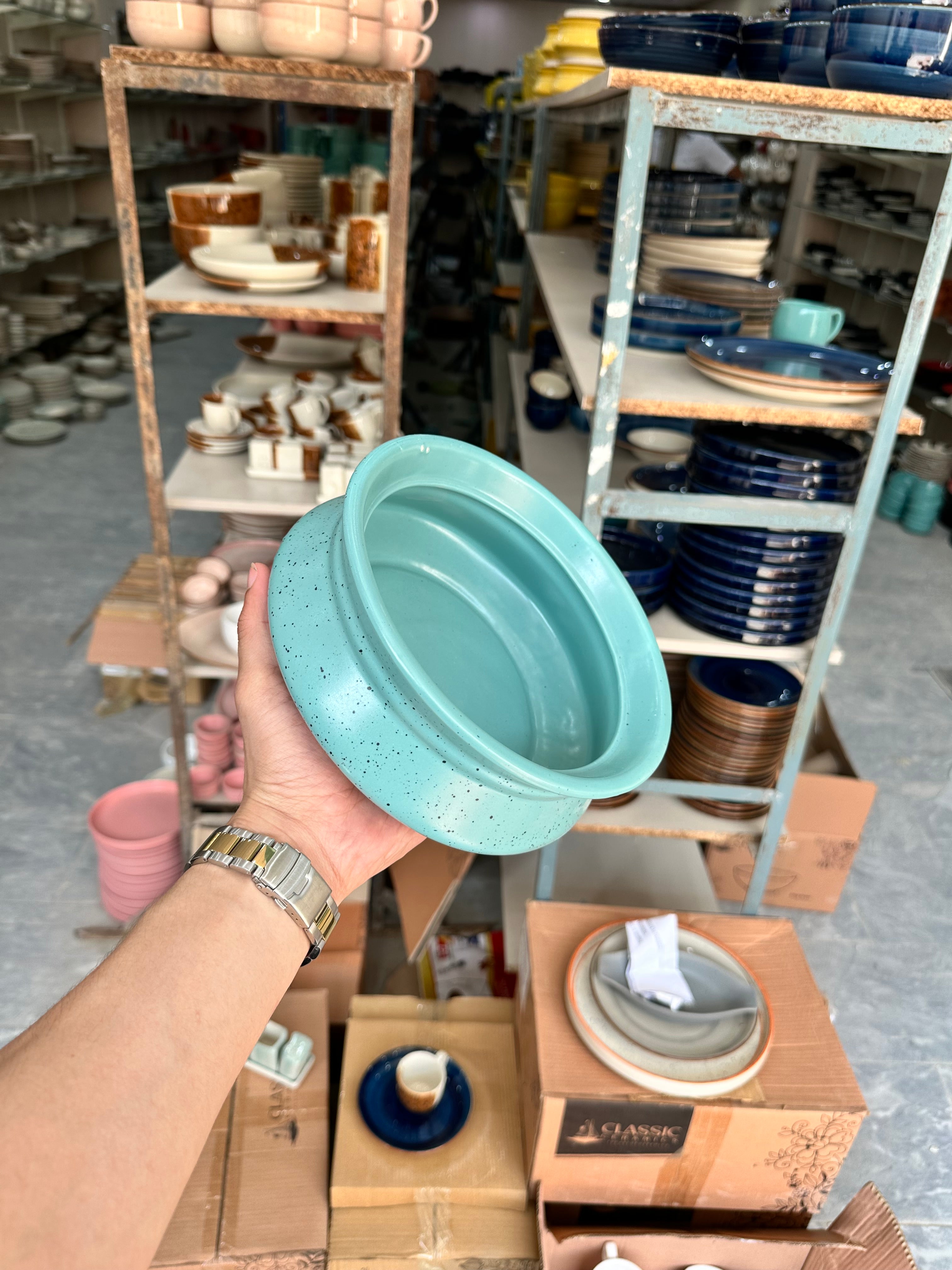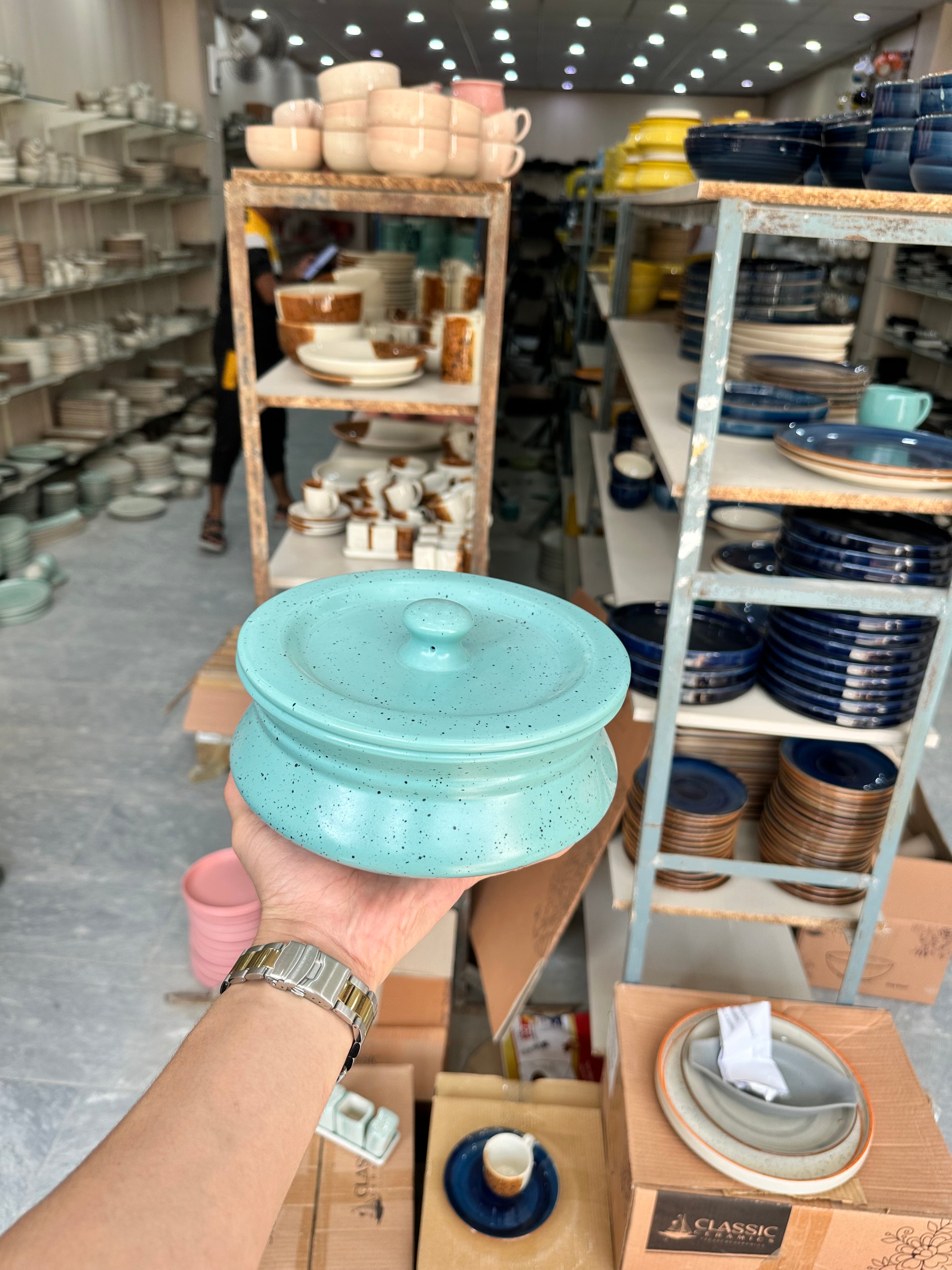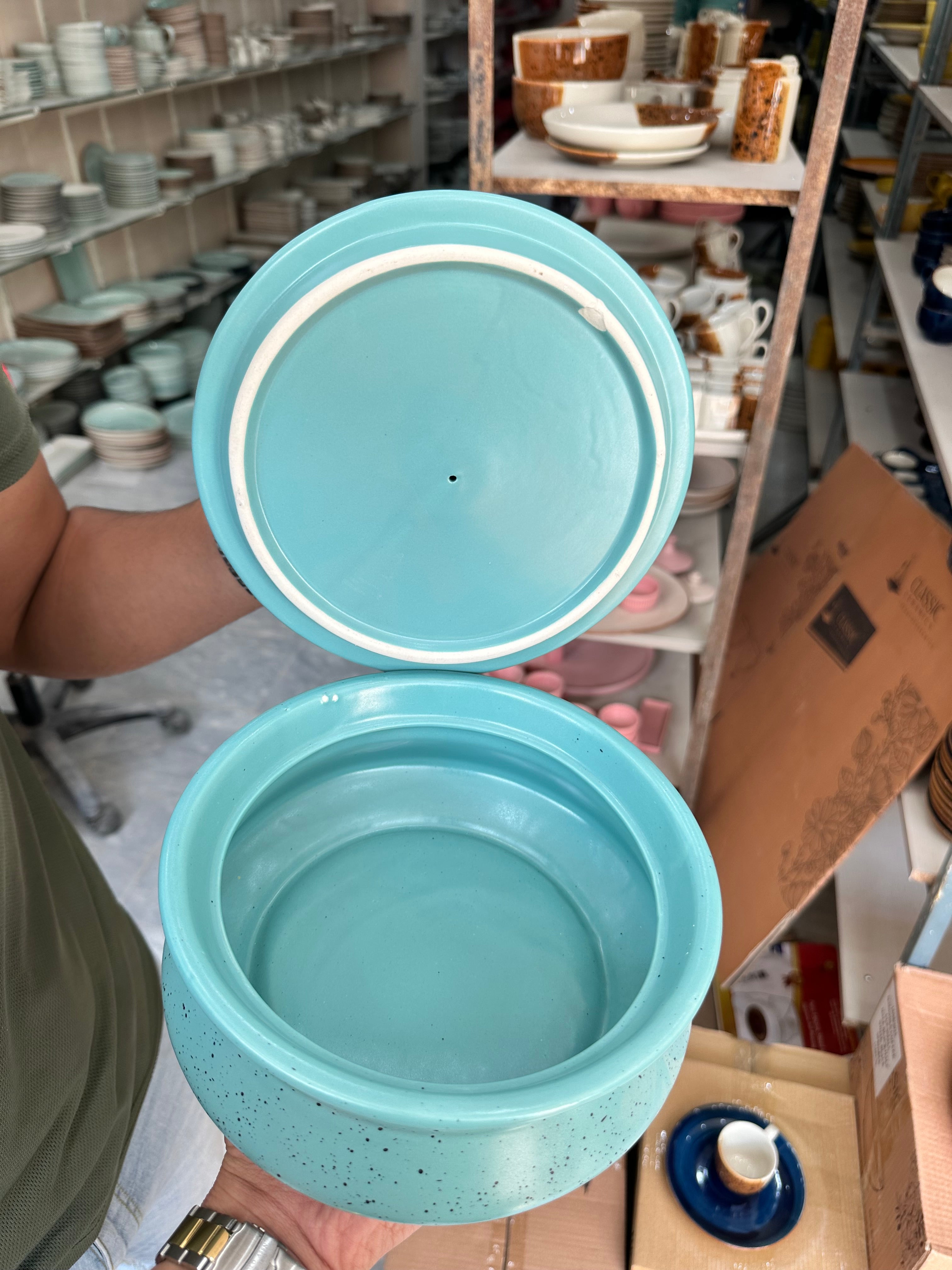 Leftover 8 inch Handi ( Firozi Matte with Black Specks )